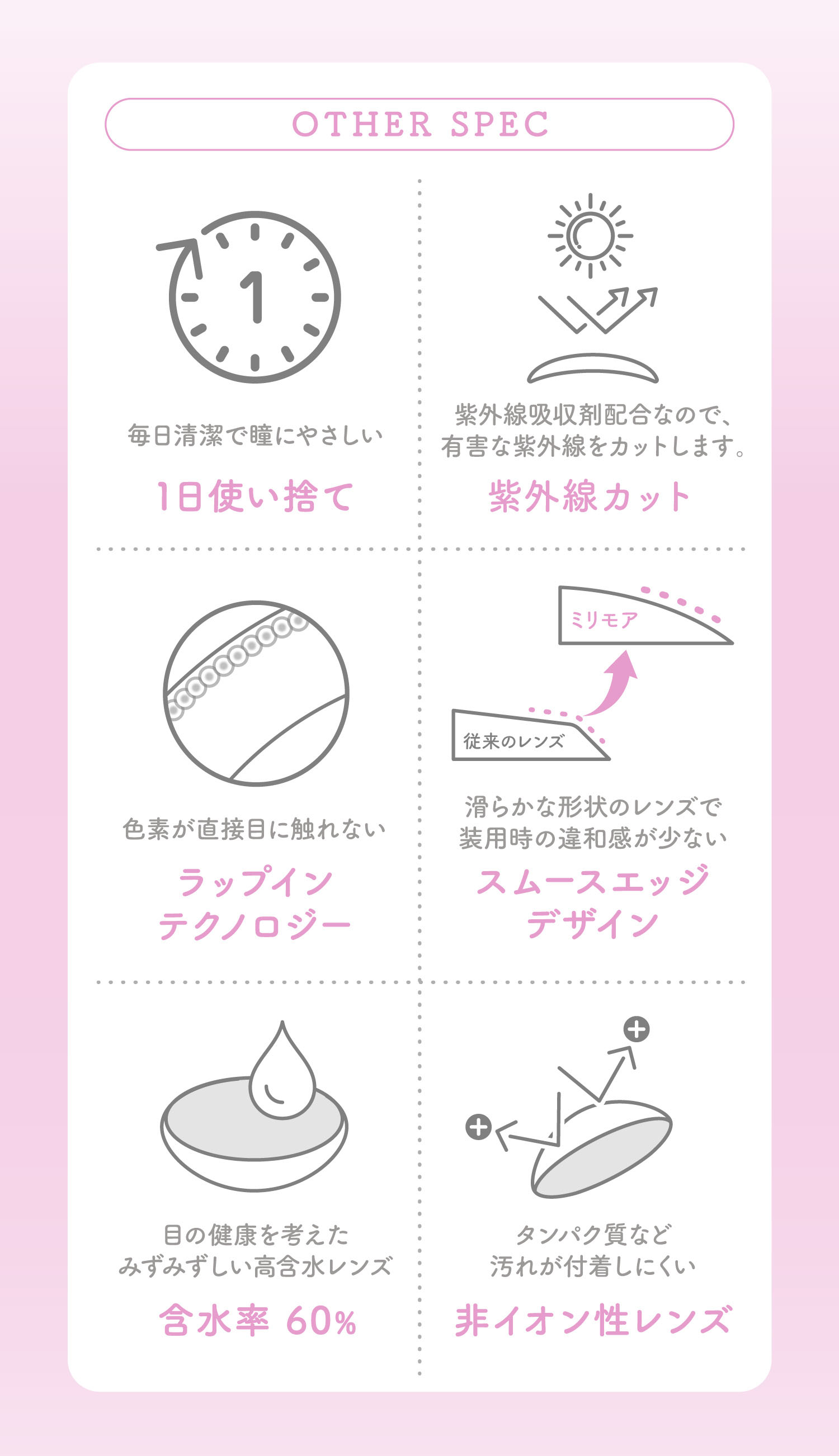 【商品スペック】DIA 14.2mm/BC 8.7mm/含水率 60.0%/着色直径 13.6mm