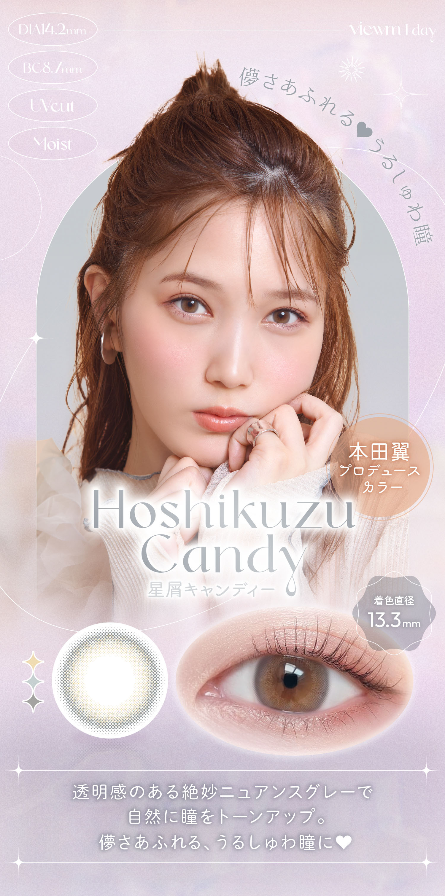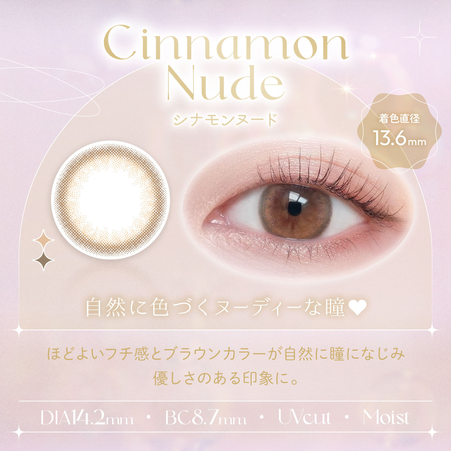【商品スペック】DIA 14.2mm/BC 8.7mm/含水率 42.5%/着色直径 13.4mm