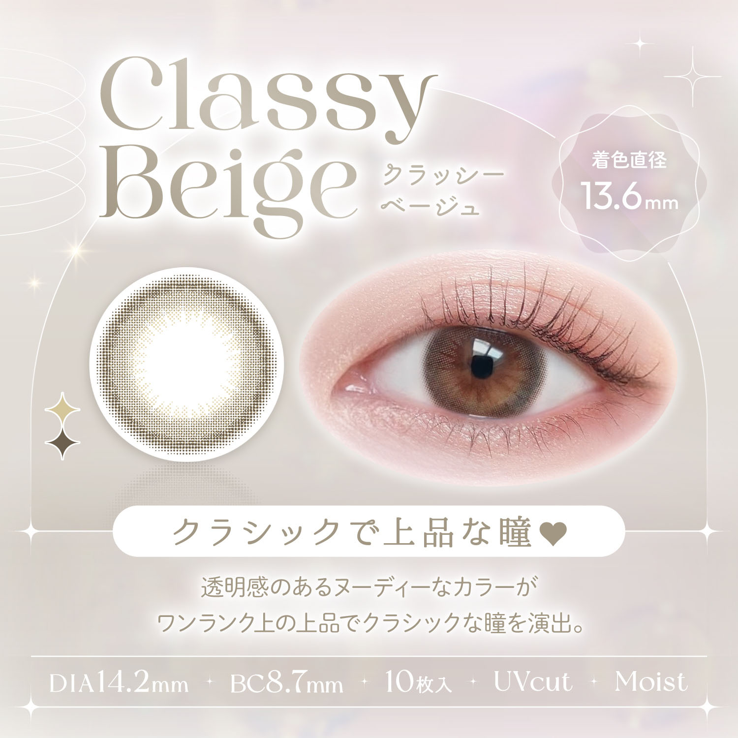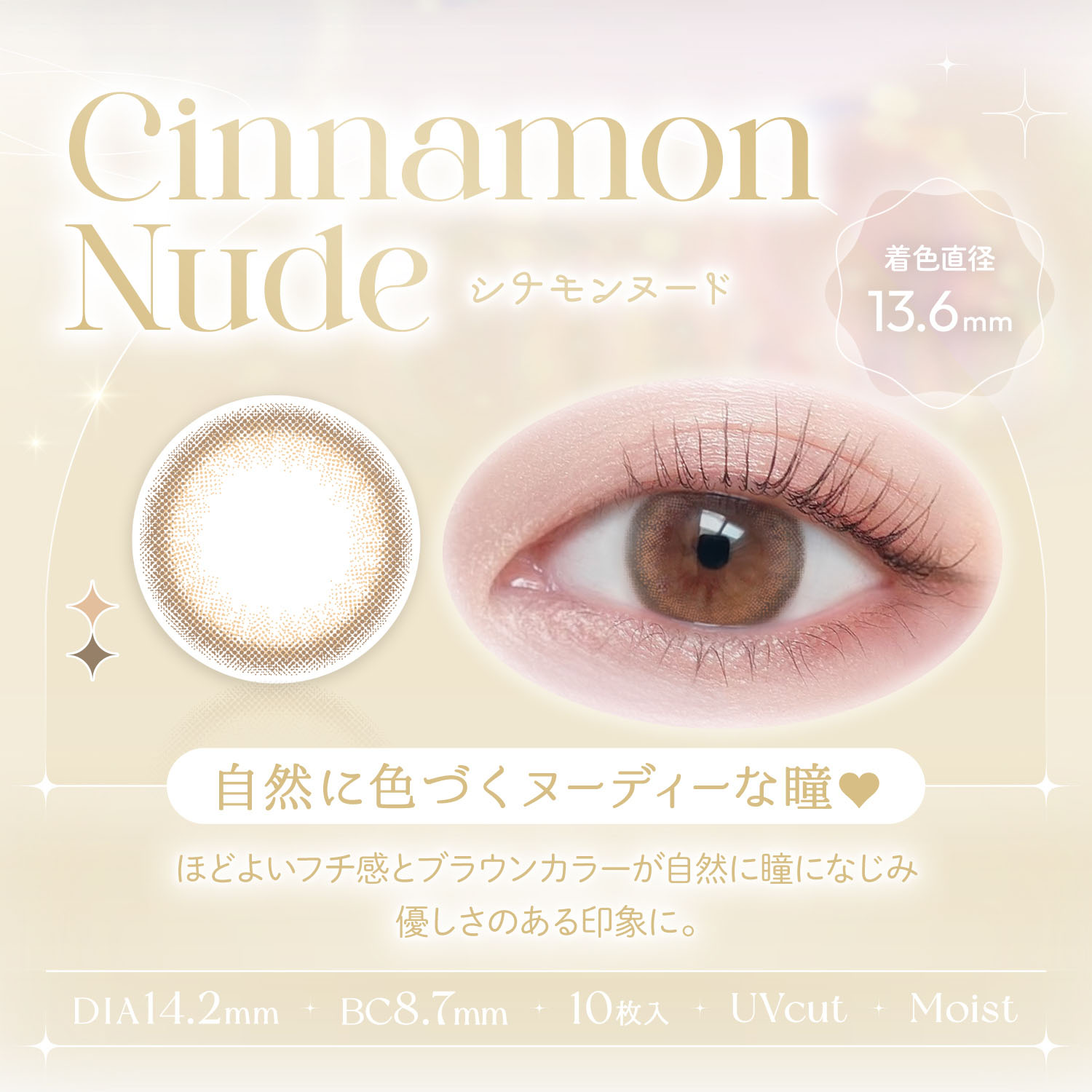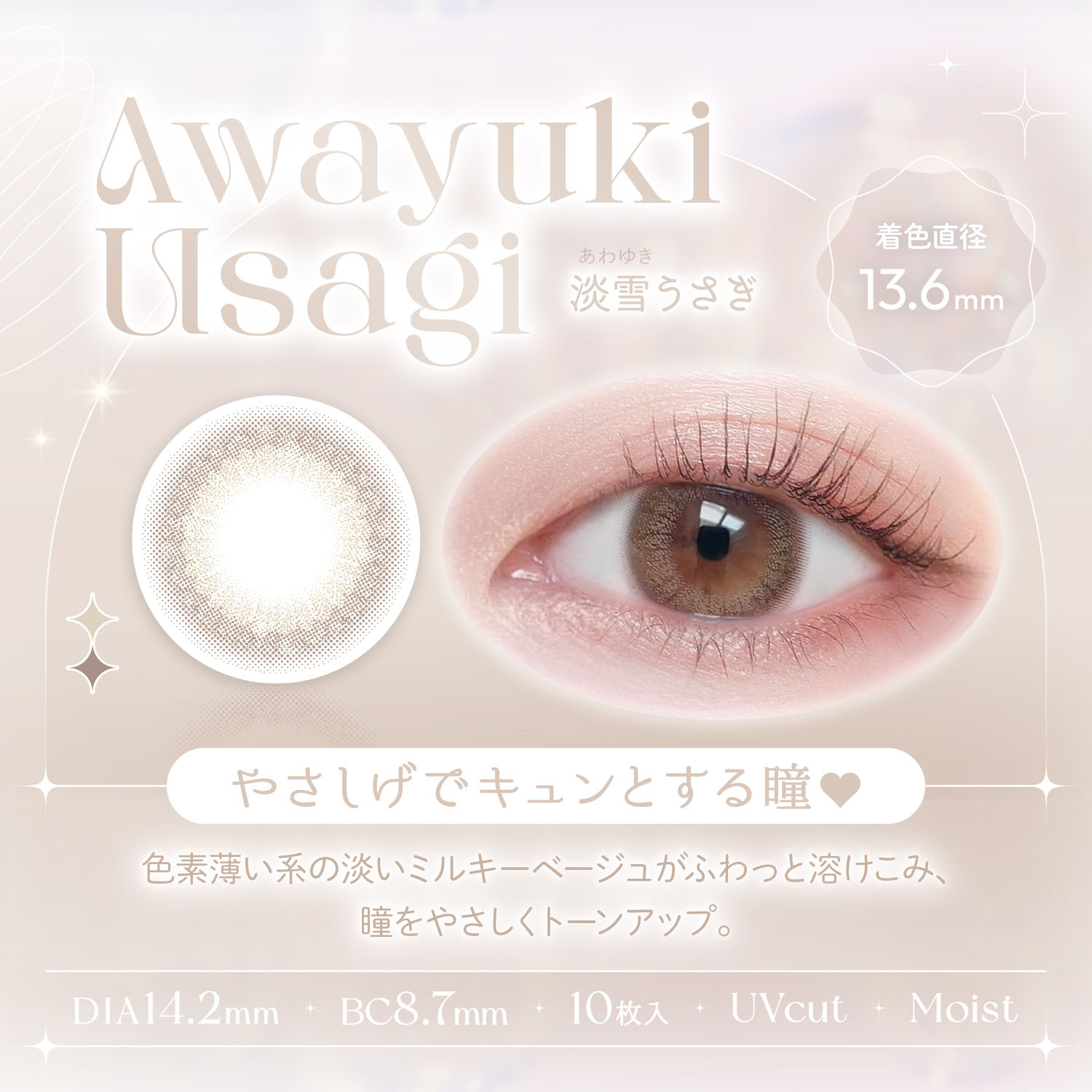 【商品スペック】DIA 14.2mm/BC 8.7mm/含水率 42.5%/着色直径 13.4mm